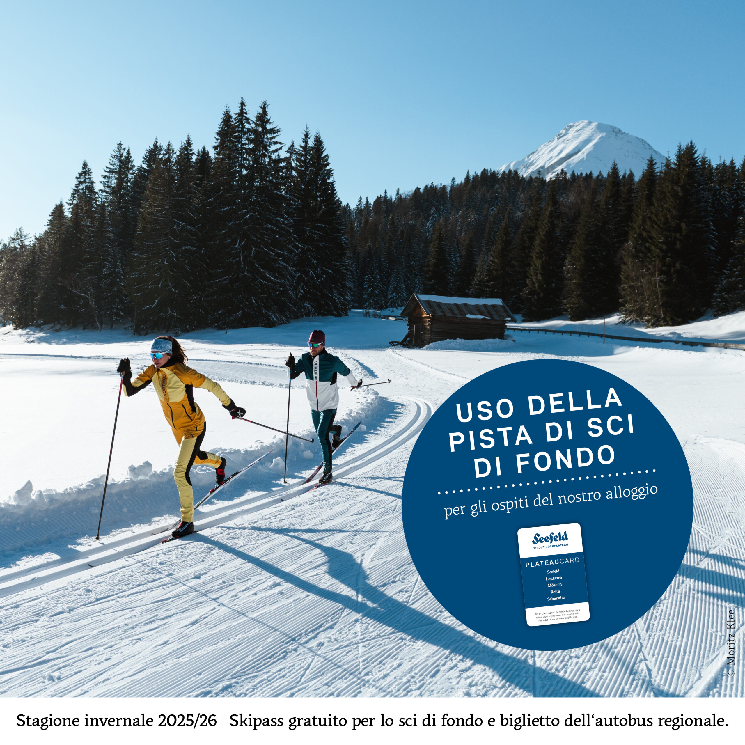Seefeld è una delle regioni più belle d’Europa per lo sci di fondo. Oltre 245 km di piste preparati alla perfezione attraversano foreste innevate, superano altopiani soleggiati e raggiungono romantici pascoli alpini. Seefeld offre infrastrutture di livello mondiale, che hanno ospitato più volte i Campionati mondiali di sci nordico ed eventi olimpici. Piste da sci di fondo attentamente curate, moderni impianti di innevamento artificiale e uno scenario naturale mozzafiato accompagneranno le tue escursioni.